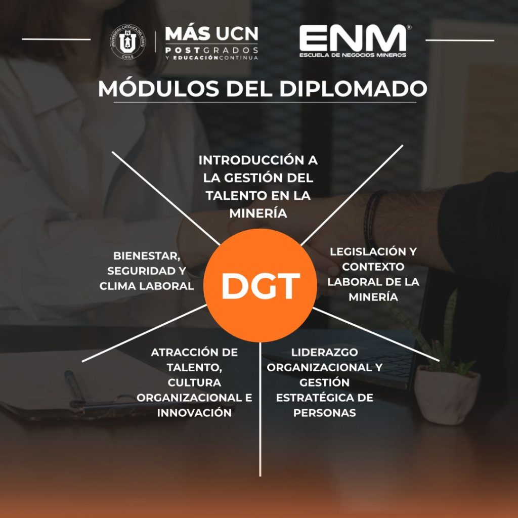 Diplomado en Gestión Estratégica del Talento en la Minería está orientado a la formación de profesionales que se desempeñan en áreas de recursos humanos, gestión de personas y liderazgo organizacional, con el propósito de fortalecer sus competencias para enfrentar los desafíos propios de la industria minera y, a la vez, transferibles a otros sectores productivos.